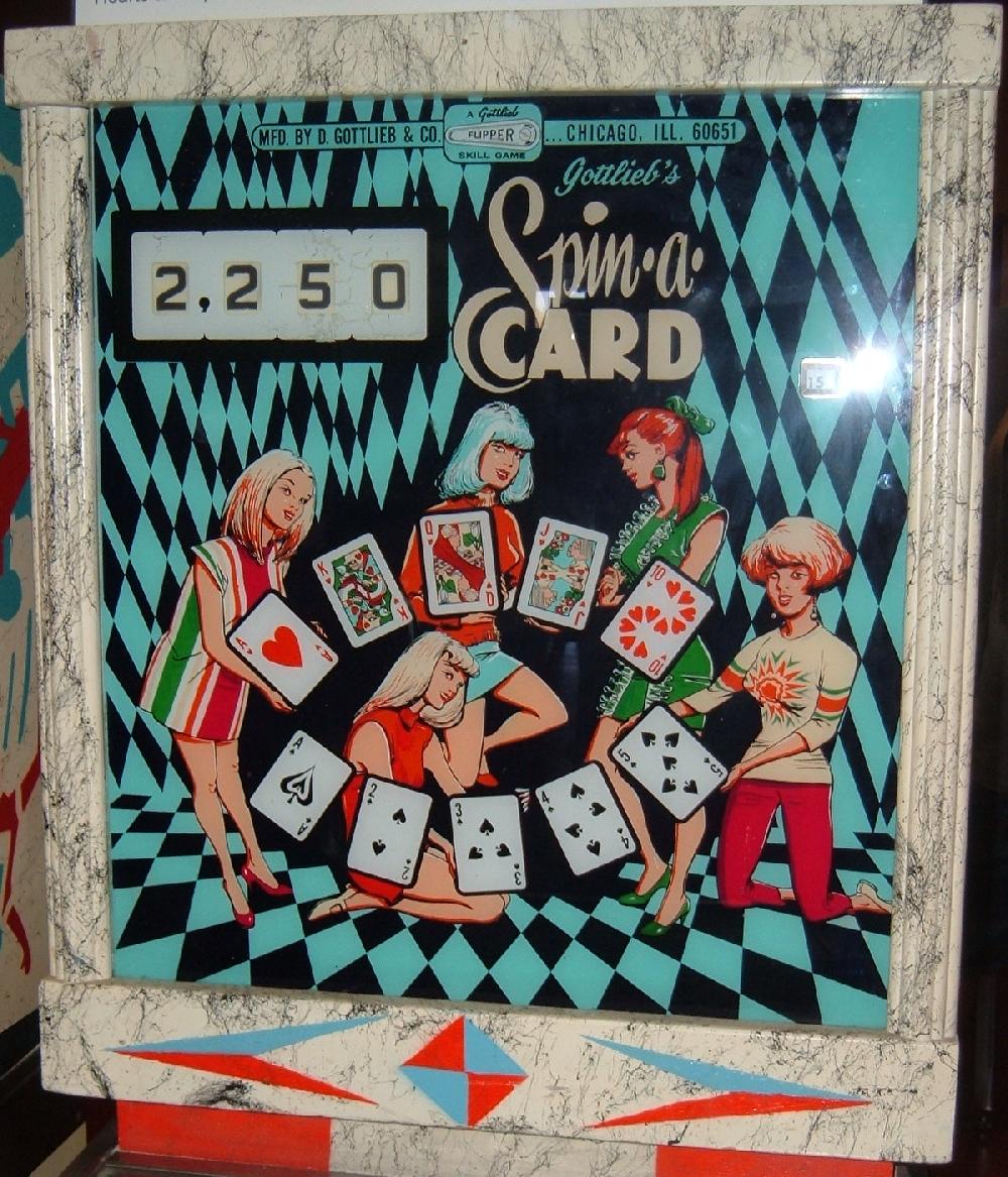 Description: Gottlieb Spin-A-Card, 1/69, 2650 made, one player replay of Hearts & Spades, beaded sides on backbox If you have a Gottlieb Spinacard pinball for sale, please contact me at cfh@provide.net