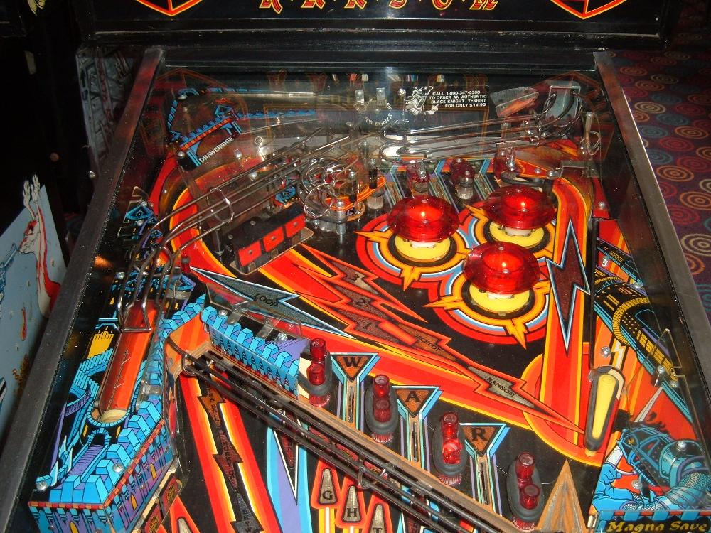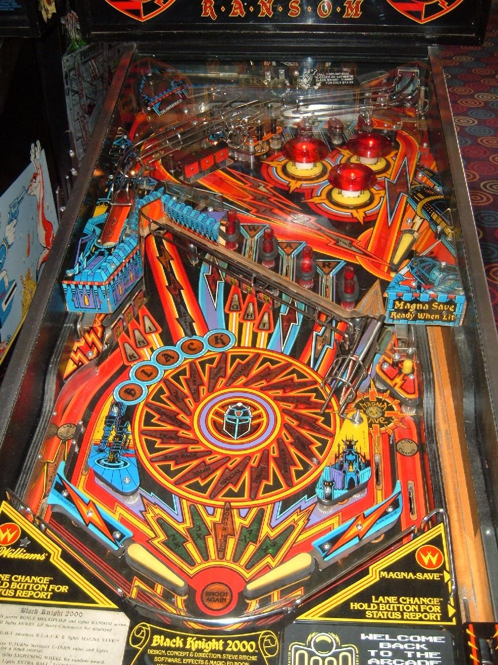 Description: Description: Black Knight 2000, Williams, 6/89, a continuation and modernization of the 1980 Black Knight pinball. Has two levels and multiball and speech. There were 5703 Williams Black Knight 2000 pinballs were made. Williams system11b solidstate design. If you have a Williams Black Knight 2000 pinball for sale in Michigan, please contact me at cfh@provide.net
