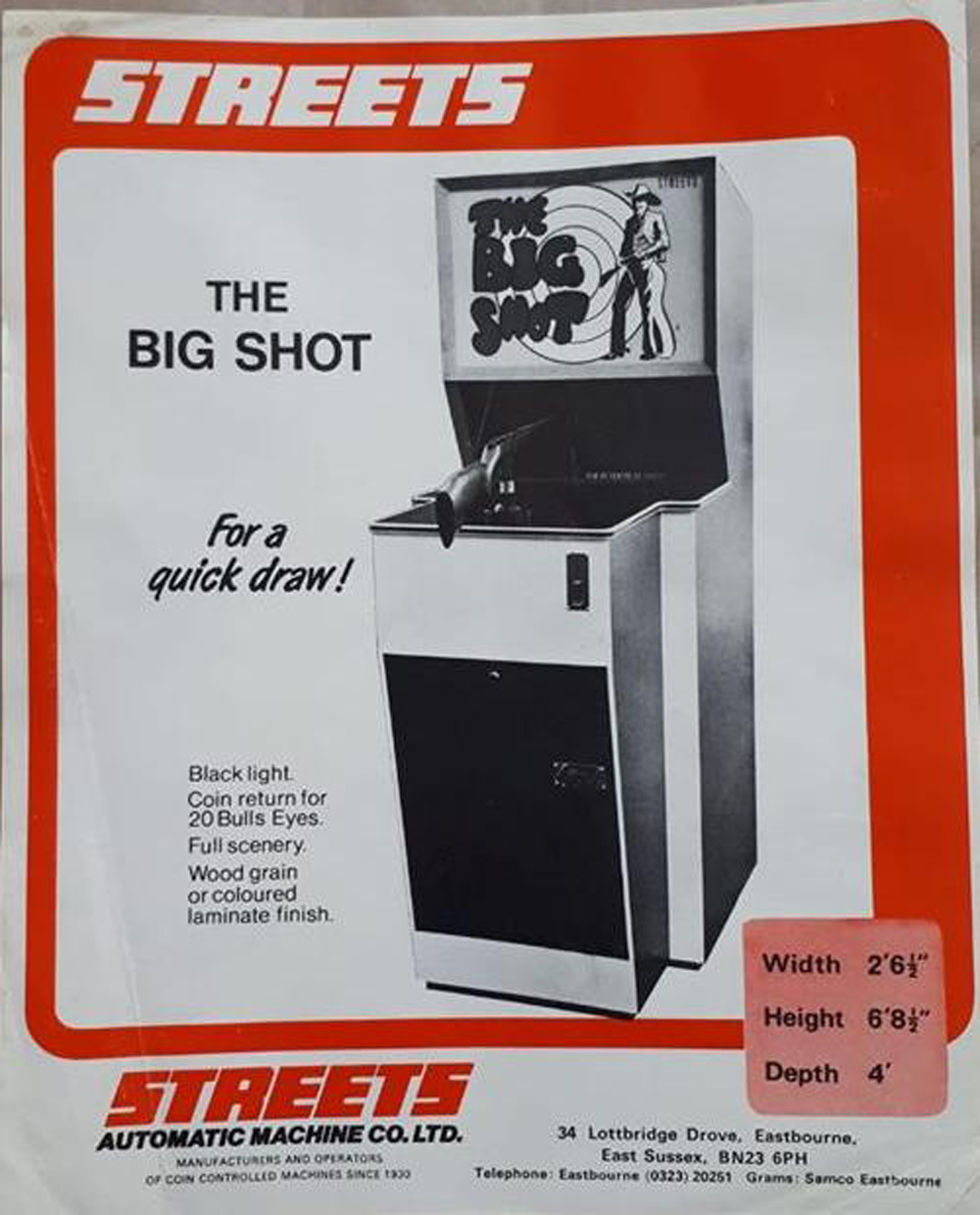 Description: Big Shot, Streets Automatic Machines, date unknown, made in England. If you have a Streets Big Shot gun game for sale please contact me at cfh@provide.net