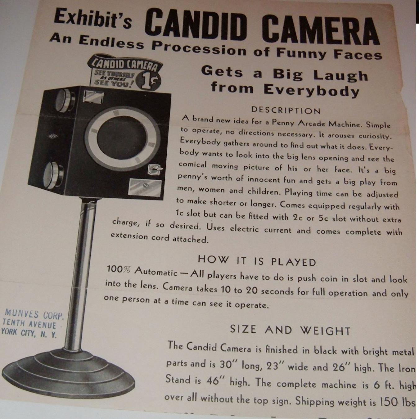 Description: Candid Camera, 1950s (exact date unknown), Exhibit Supply. If you have a Candid Camera for sale please contact me at cfh@provide.net