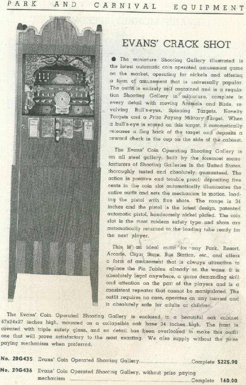 Description: Crack Shot, Evans, 1930s (exact date unknown), sort of a console ABT style gun game.
