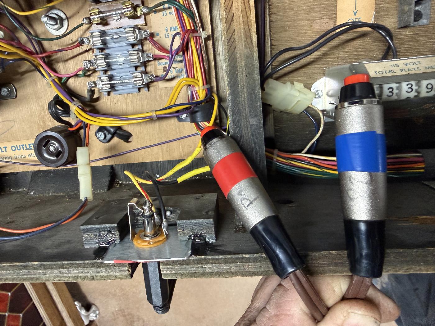 Table Tennis left player's hardwired jack. I like to use 1/4" mono guitar cable jacks for these.