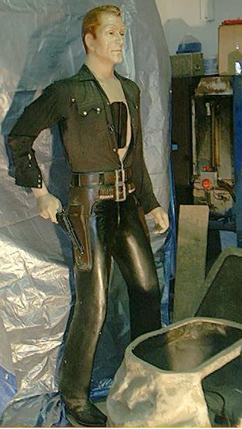 Description: Mr. Quick Draw, Dynamic Amusement Devices (N. Hollywood, CA), 1961. Full size (6 feet) gunfighter that the player has a shootout with, manikin's right arm draws up to shoot, small mohawk loop dual head audio tape with good sound. Much like Taylor Mr. Top Gun and Shootout at Rock Gulch and Gun Slinger If you have a Mr. Quickdraw for sale please contact me at cfh@provide.net