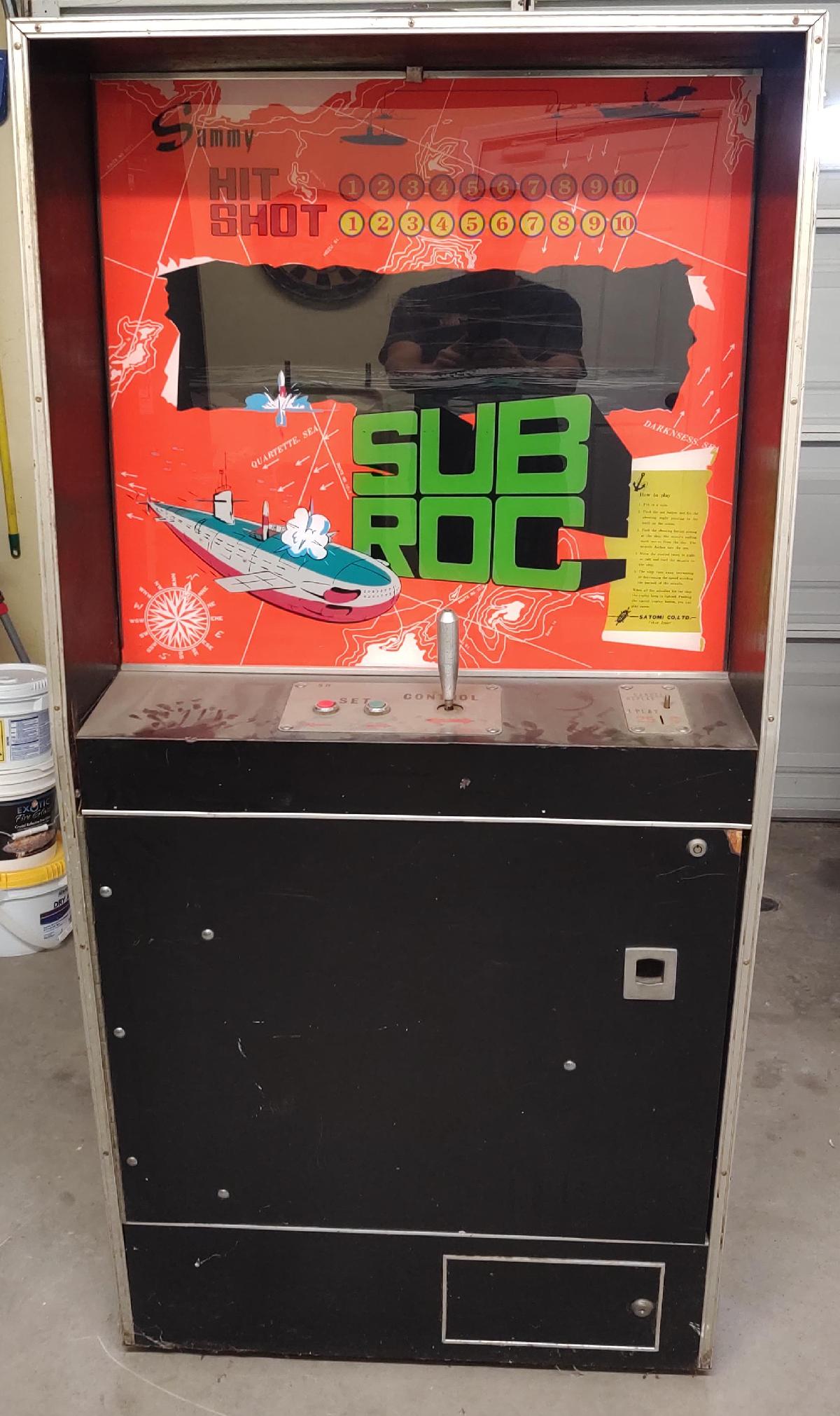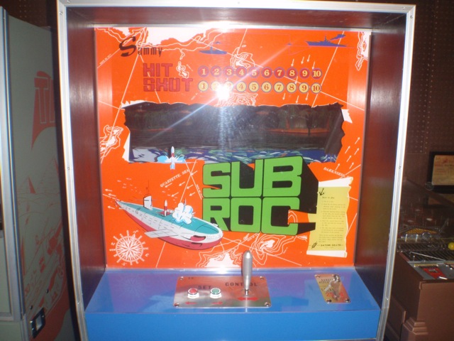 Description: Subroc, Sammy (Satomi), 1970s (exact date unknown). Shoot the submarines and they explode and break in half. Very similar to the Sega Sonar and Bally Subpack. If you have a Sammy Sub Roc for sale please contact me at cfh@provide.net