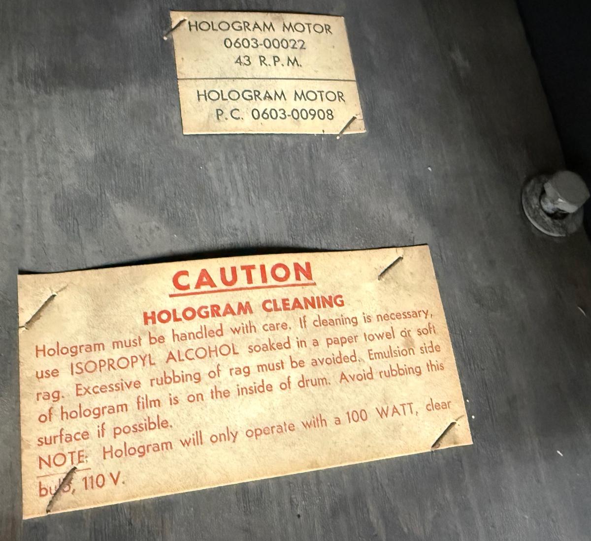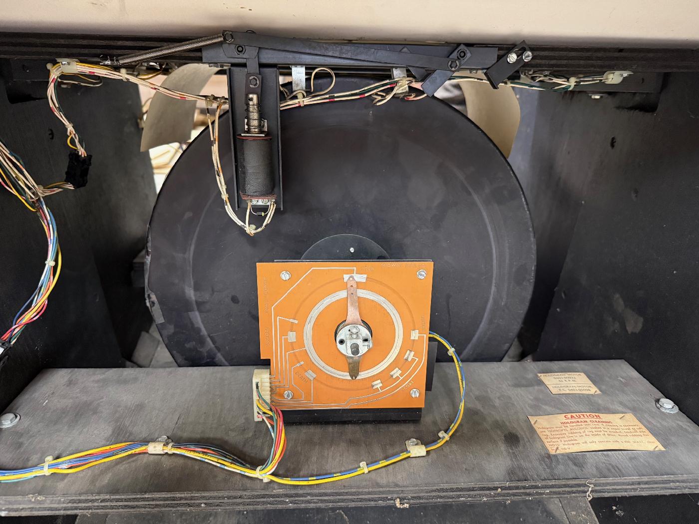 The hologram can be seen here, connected to the moving turntable. This hologram is present but damaged.