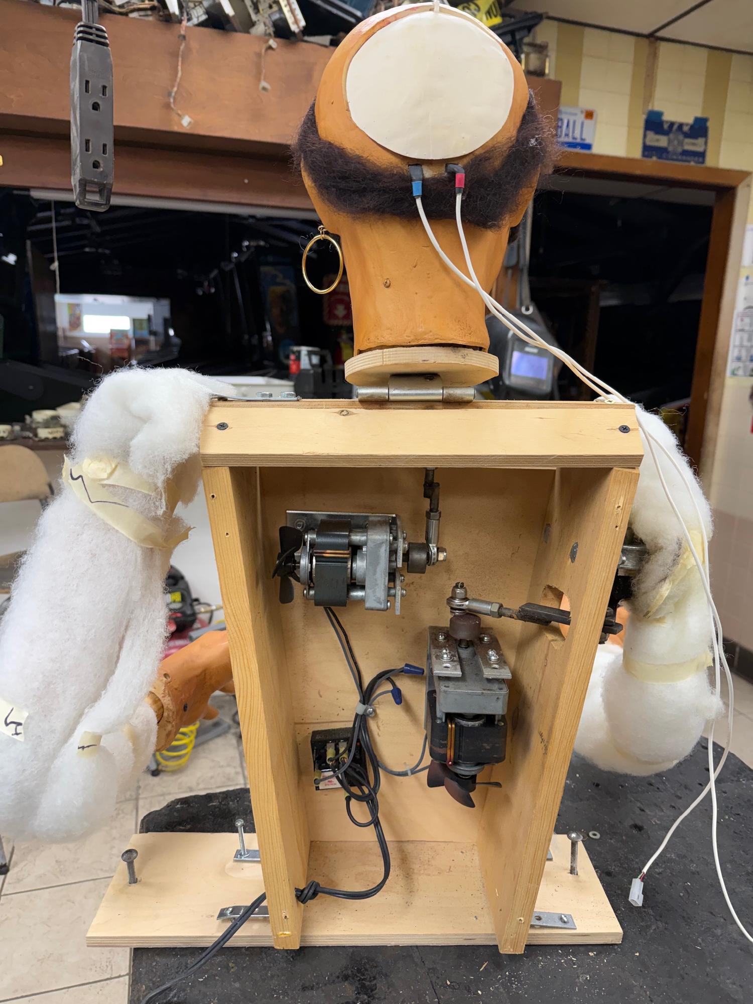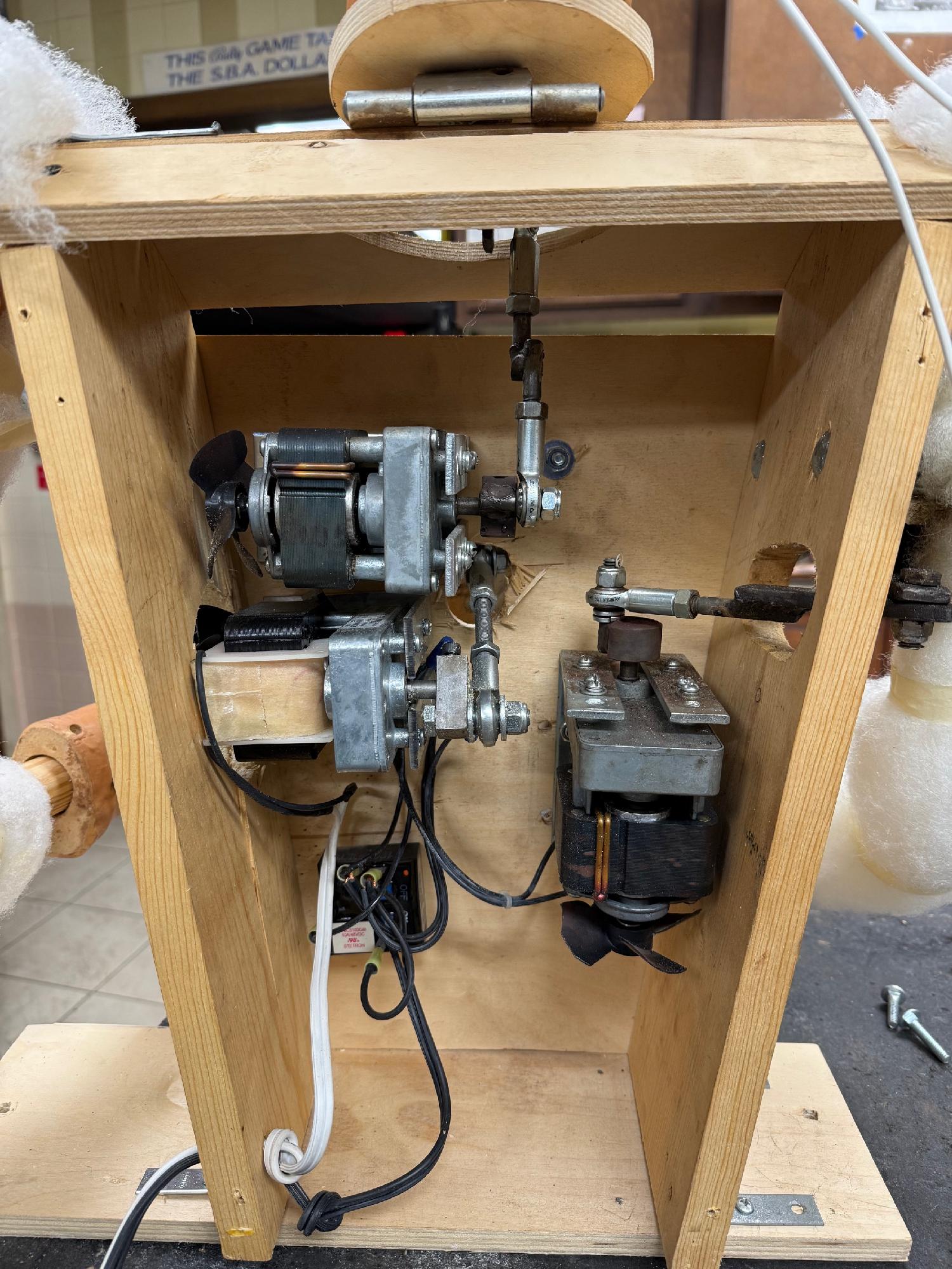 The back of Zoltar shows the hand movement motor and the head movement motor. The head movement motor