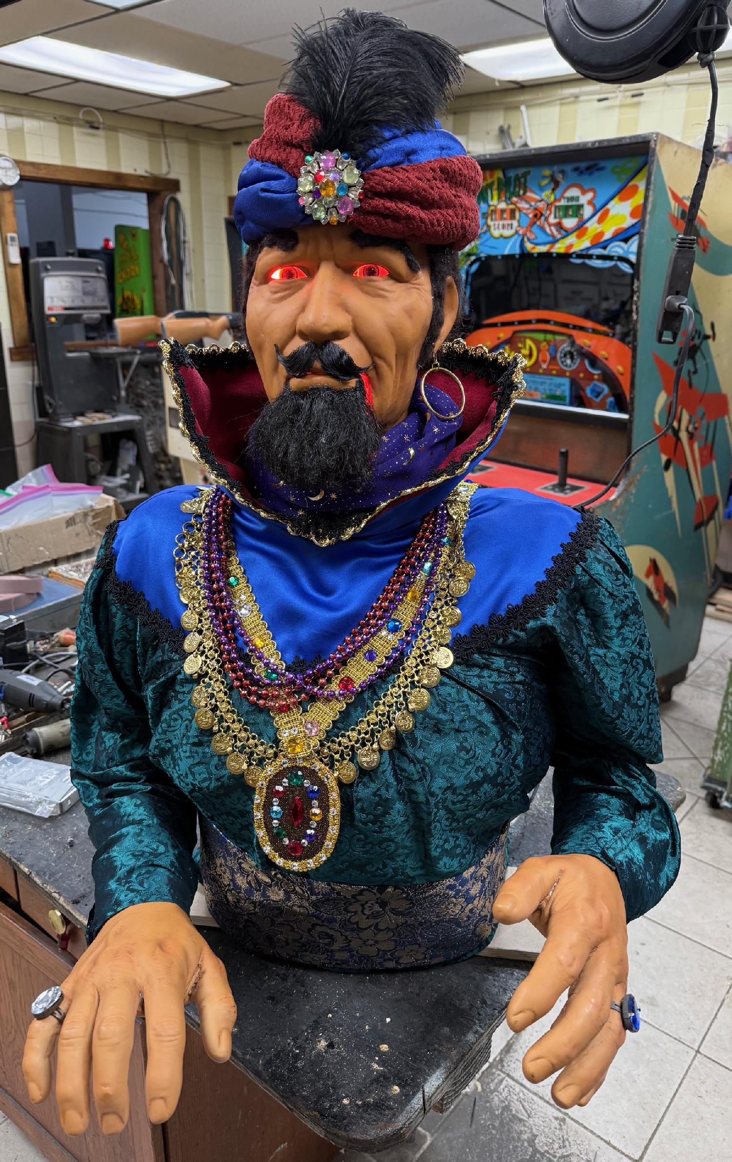 Zoltar dressed in the "vintage" clothing, to look like the movie "Big" Zoltar. Also installed
