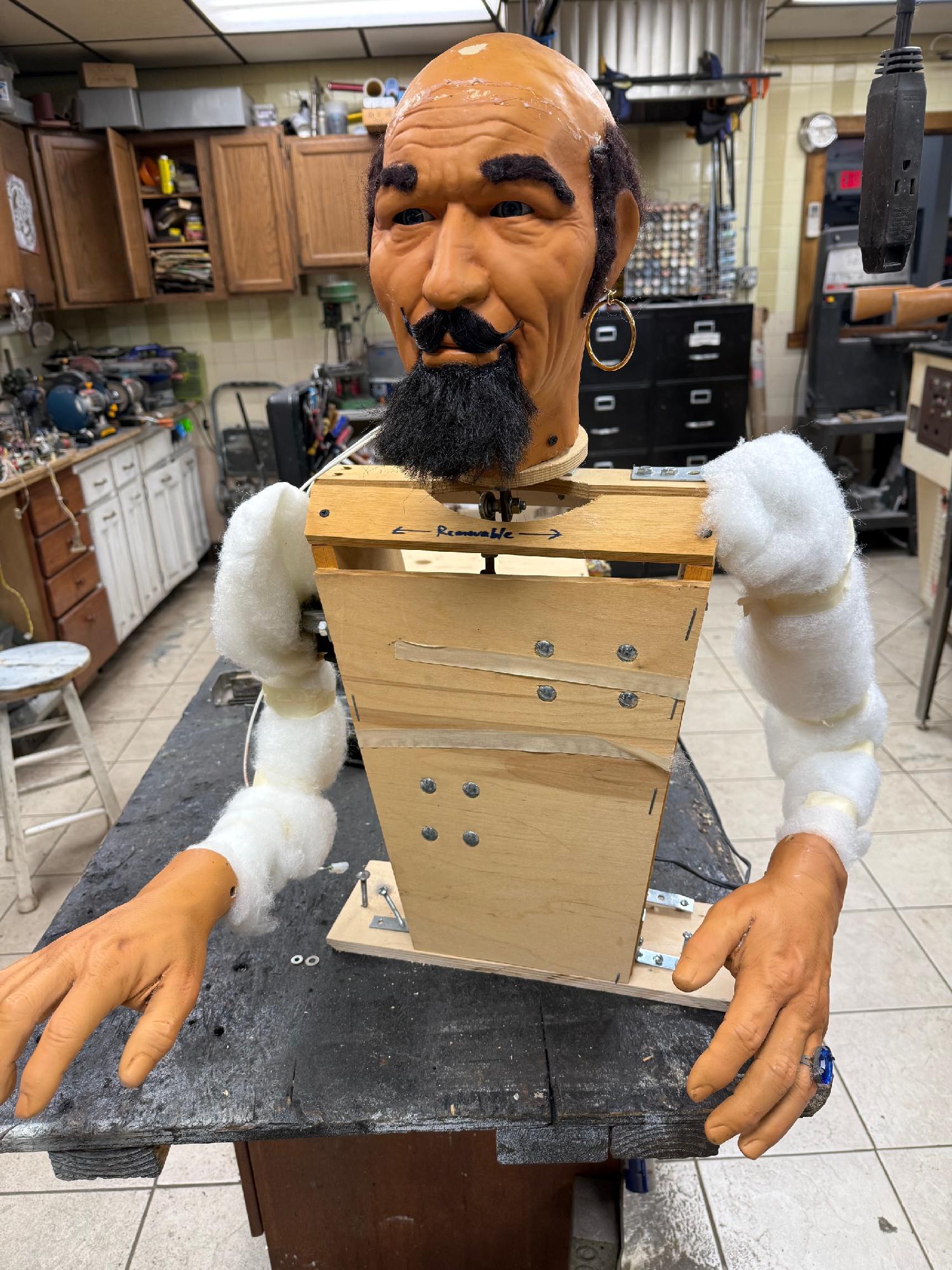 In the following two pictures, Zoltar has been modified for this feature using an added 120v motor.
