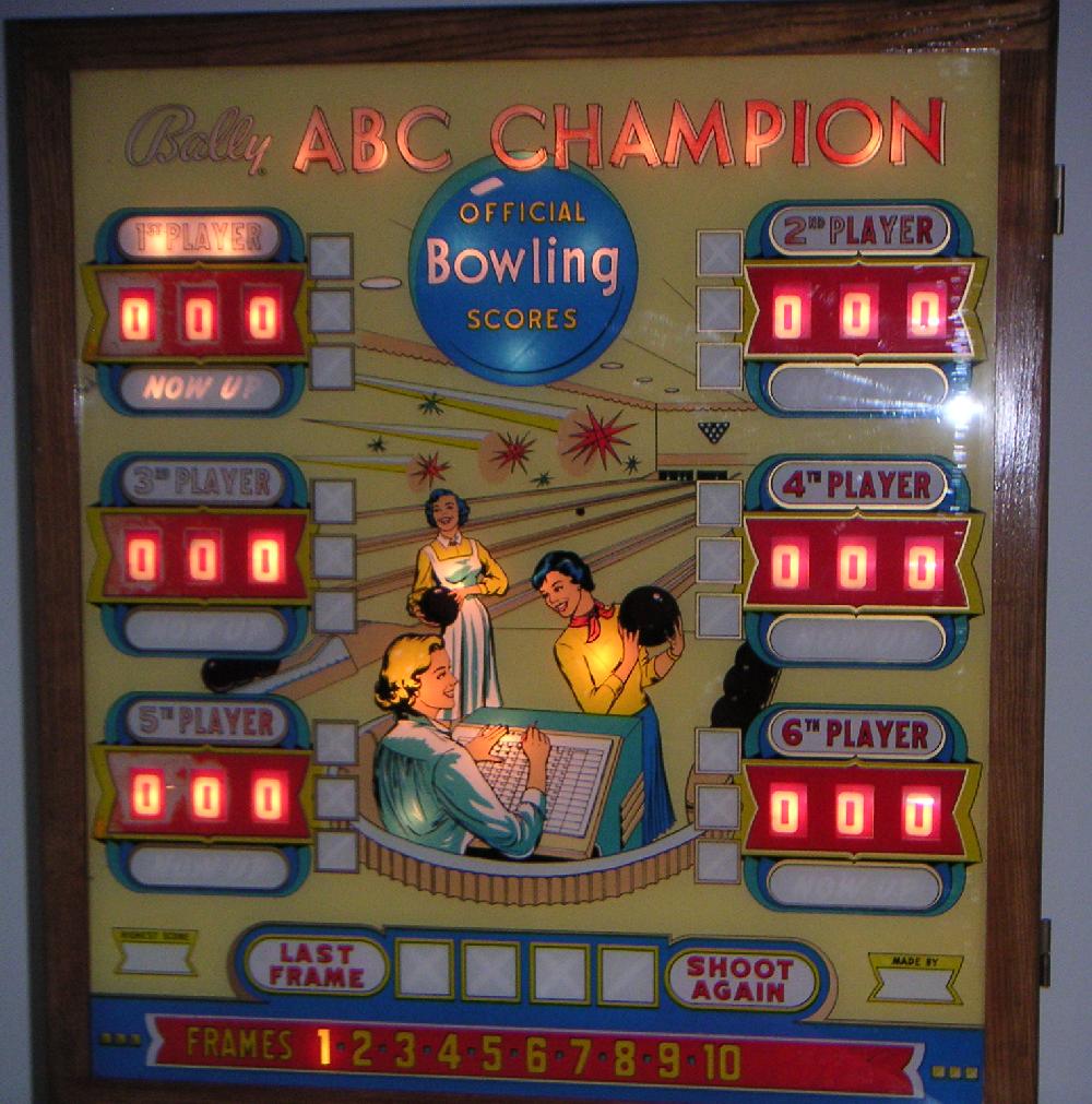 Description: A.B.C. Champion (bowling alley), Bally, 8/57, 4" balls.