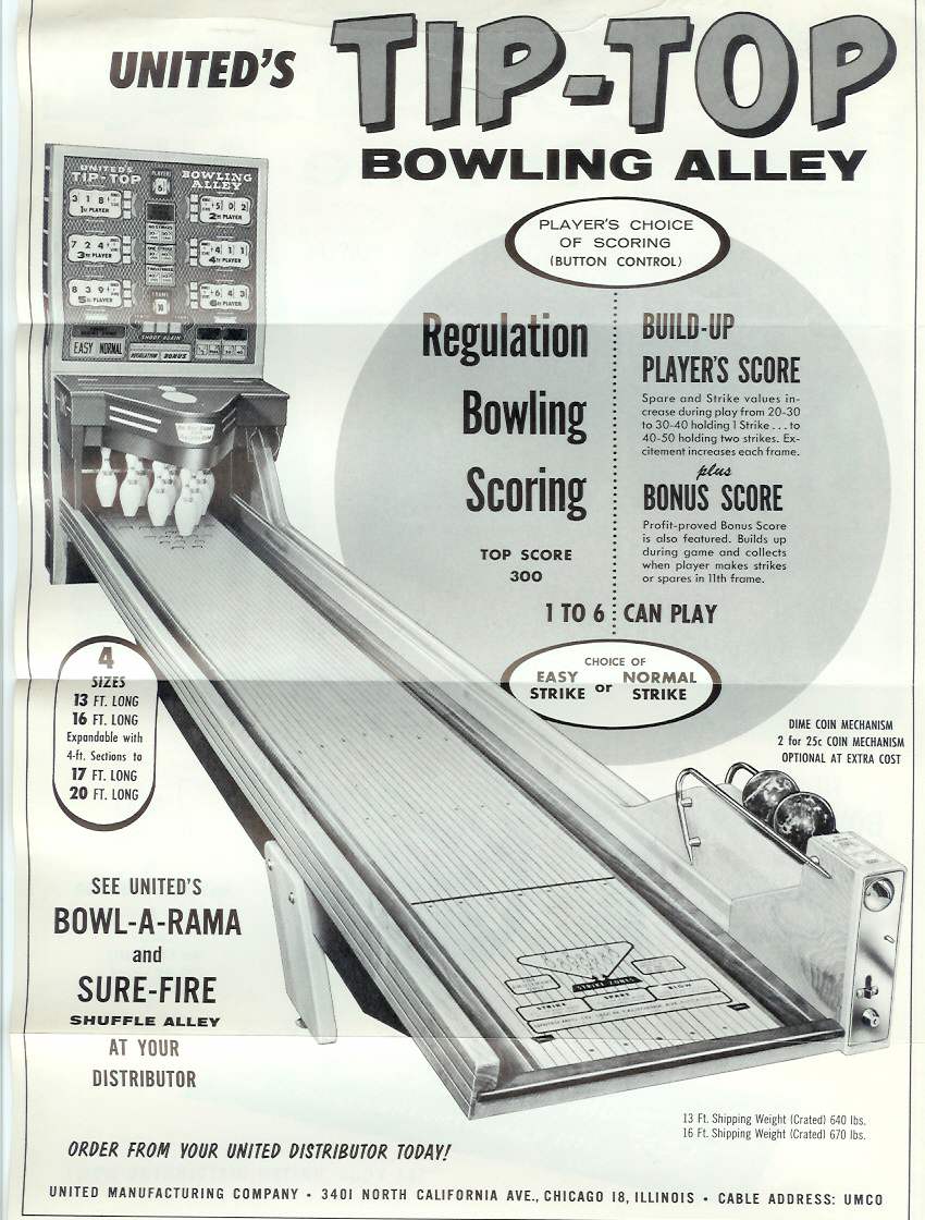 Description: Tip Top Bowling Alley, United, 1/61, 4.5" balls. If you have this game for sale I would love to buy it. Please contact me at cfh@provide.net