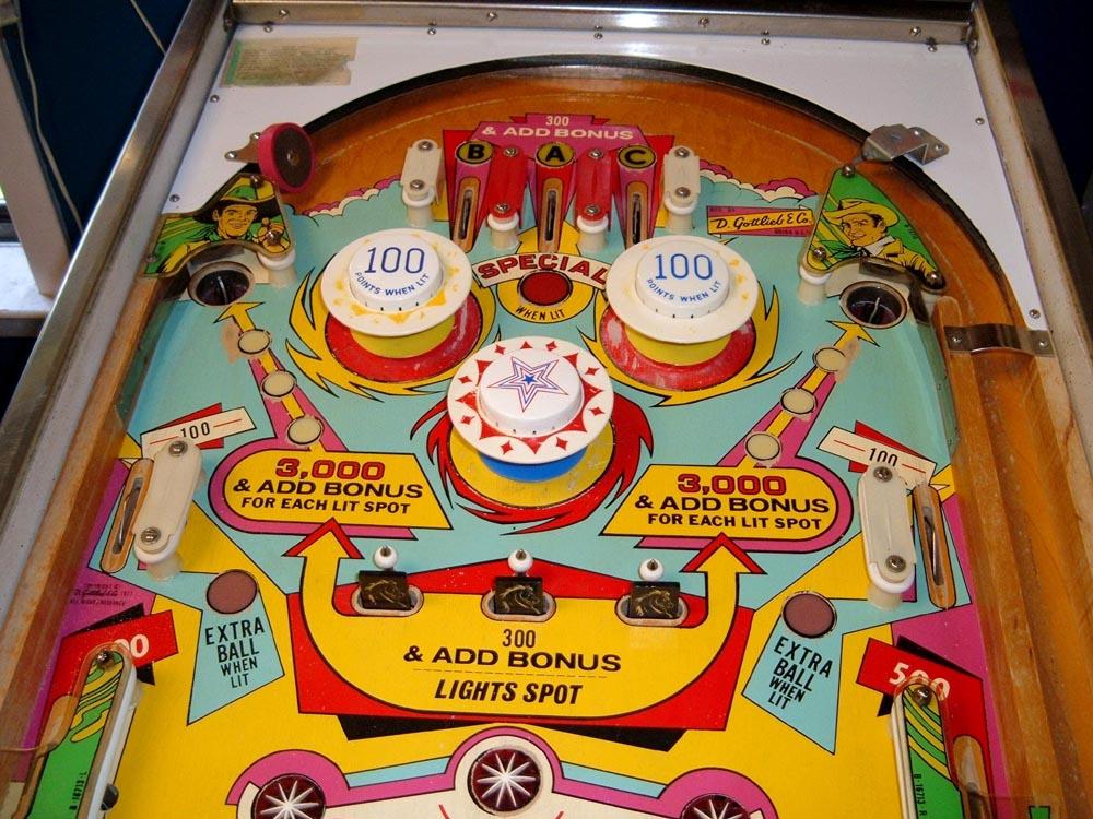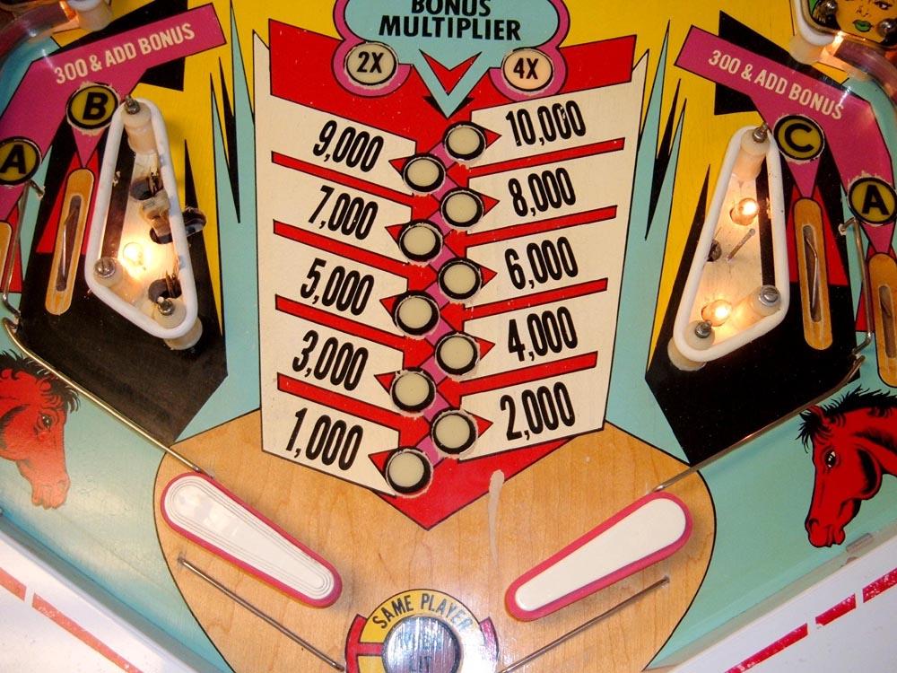 The author's Gottlieb Bronco pinball, modified as described above.