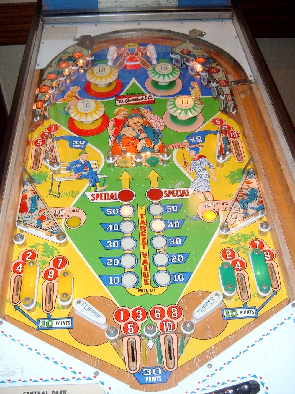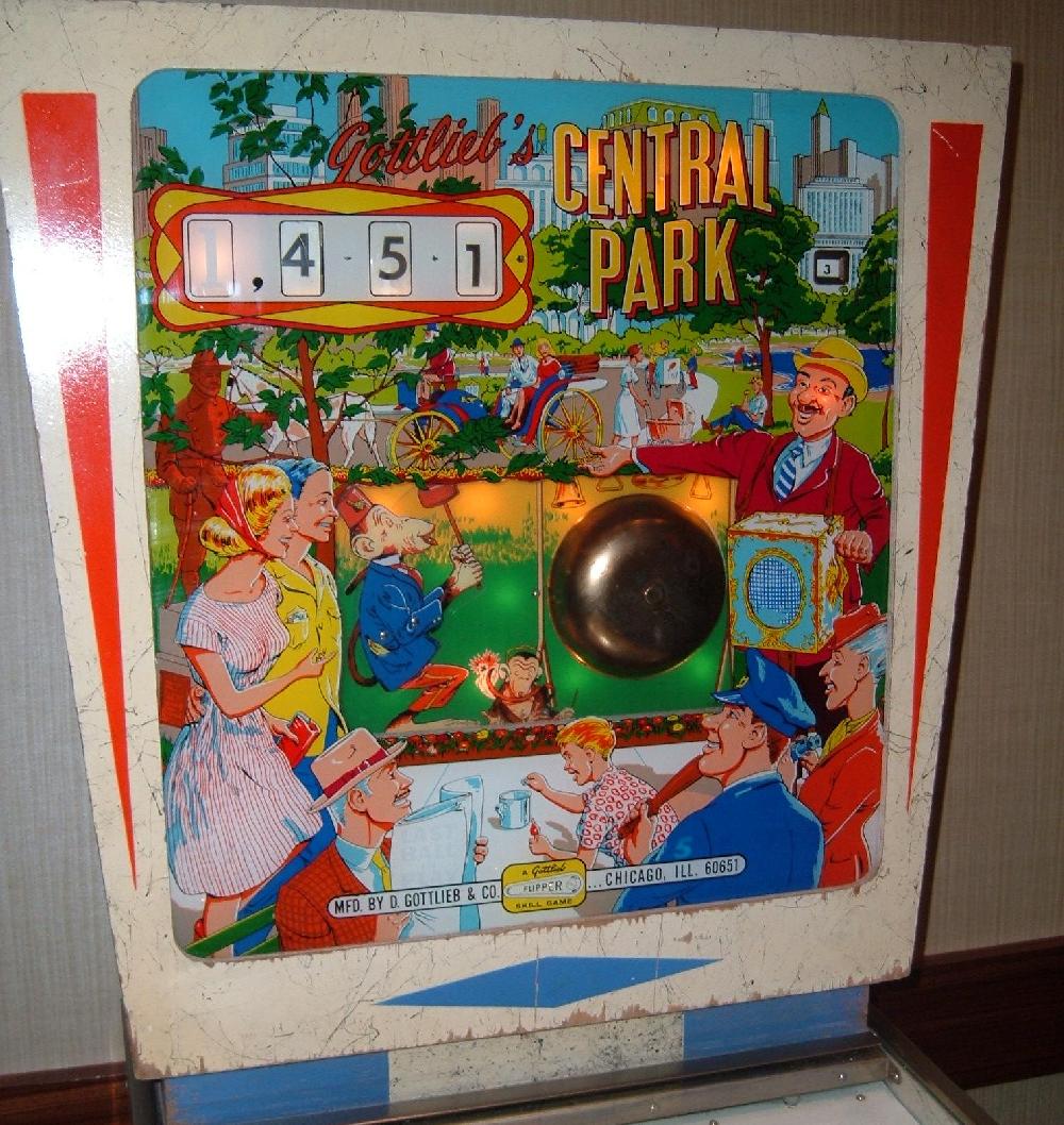 Description: Gottlieb Central Park pinball, 4/66, 3100 produced, backbox mechanical animation (monkey ringing bell). If you have a Gottlieb Central Park pinball for sale, please contact me at cfh@provide.net