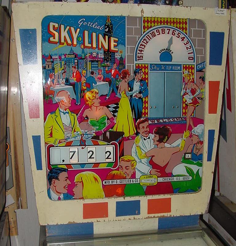 Description: Gottlieb Sky Line, 1/65, 2000 produced, Gottieb Skyline has mechanical animation (elevator in backbox). If you have a Gottlieb Sky Line pinball for sale, please contact me at cfh@provide.net