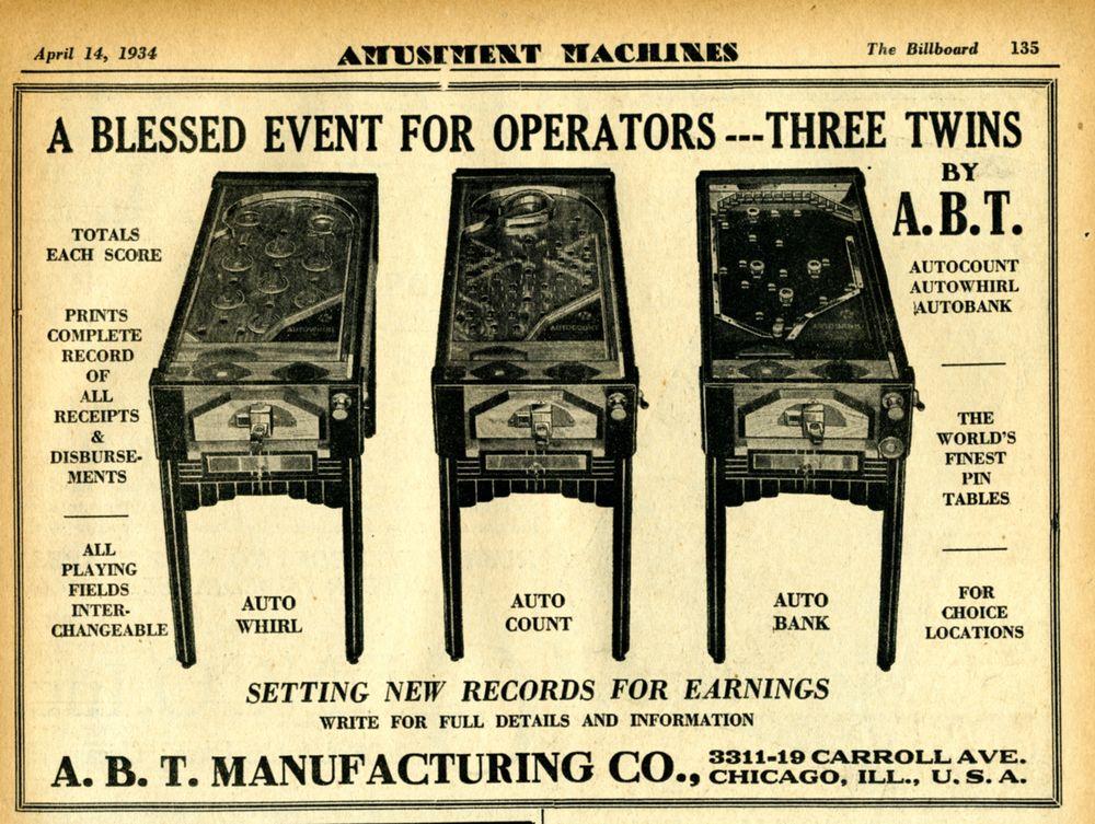 Description: Autowhirl, ABT, 02/34, built in score printer for operators. Battery operated electro mechanical pinball. Please contact me if you have this game for sale at cfh@provide.net