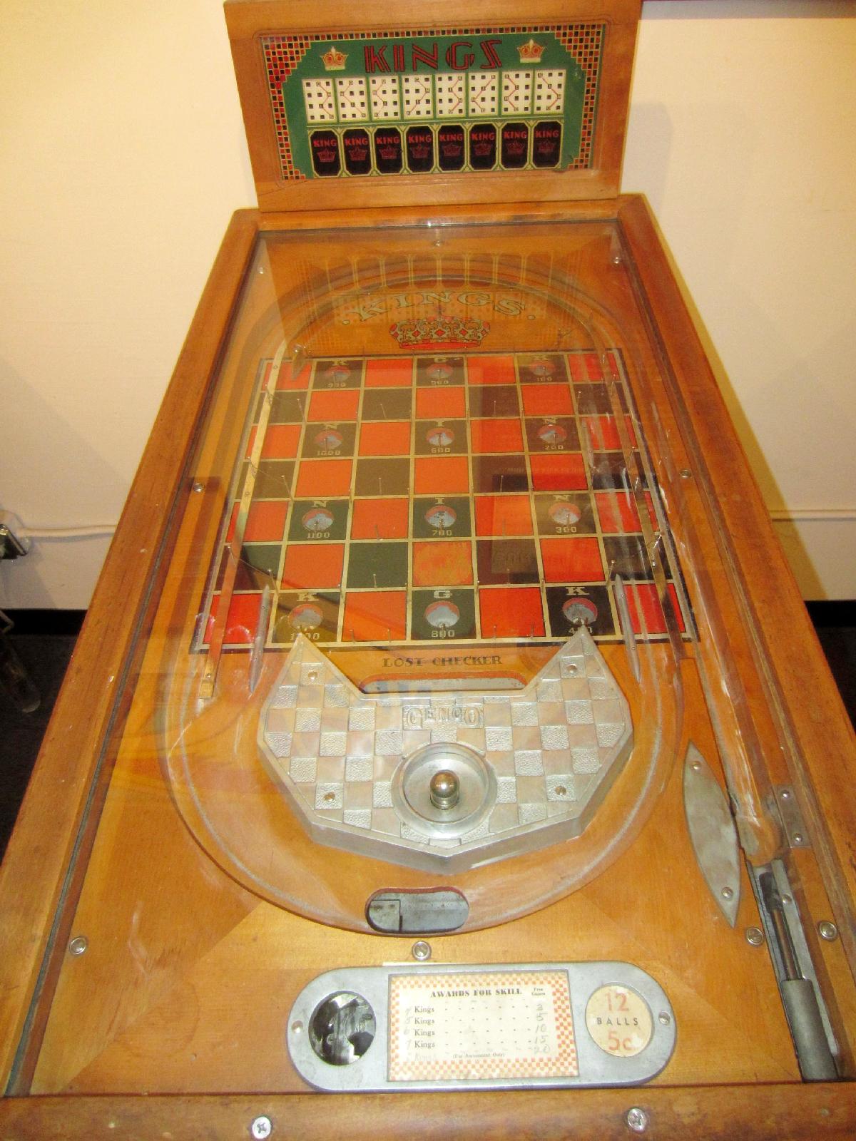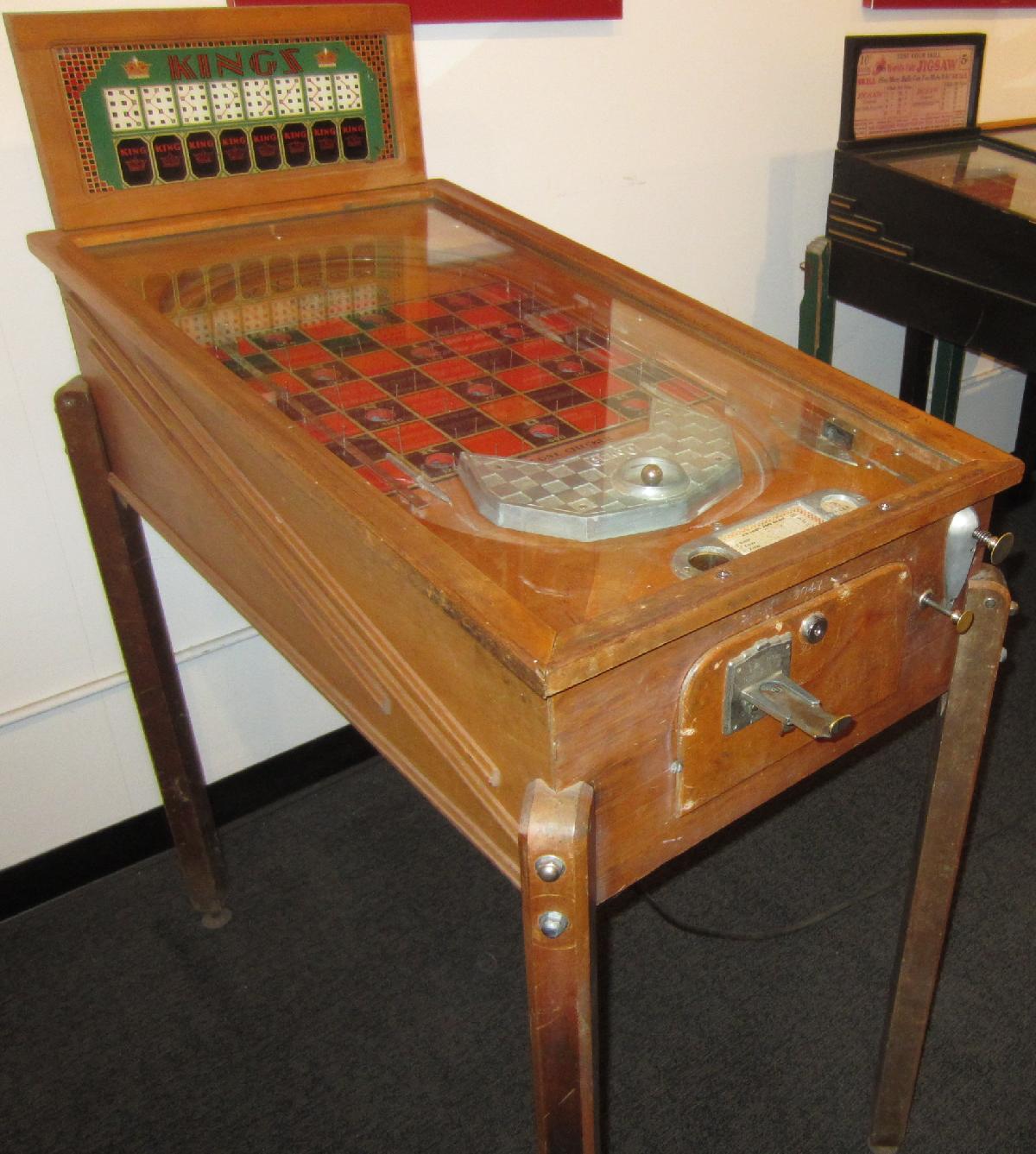 Description: Kings, Genco, 4/35, and electrical pinball version of checkers. An older version of the 1937 Genco The Wizard. Electro mechanical pinball. Please contact me if you have this game for sale at cfh@provide.net