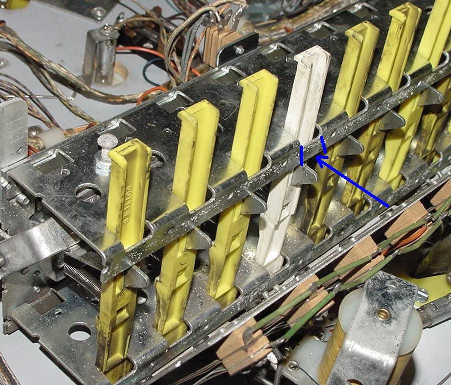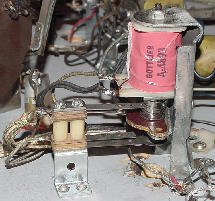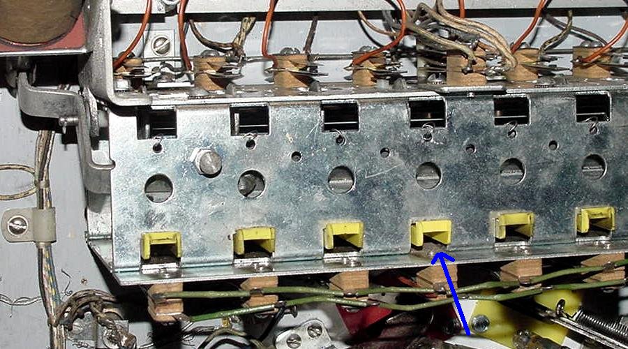 Next up is the check the pop bumpers' EOS switch. These switches are important because the controlling pop bumper relay stays "on" until the pop bumper fully engages. Then the EOS switch on the pop bumper opens, and releases the pop bumper relay. If the pop bumper EOS switches are broken ("open") as shown below, the pop bumpers will still work. Just they won't be as powerful as they could be. So the EOS switches are important to make the pop bumpers powerful. Otherwise the pop bumper only stays energized for the length of time the ball is touching the playfield pop bumper skirt. So instead of the pop bumper "popping" the full stroke of the coil, the game may only give half-stroke. Because of this the pop bumper EOS switches are important for good game play. |