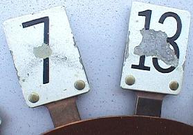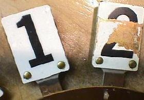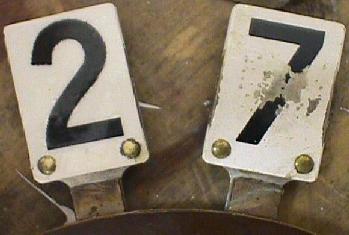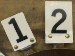 Right: Old "thin" 7/8" tall roto-target numbers as used on Flipper Clown.