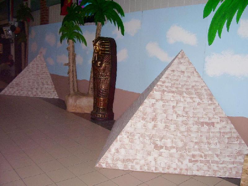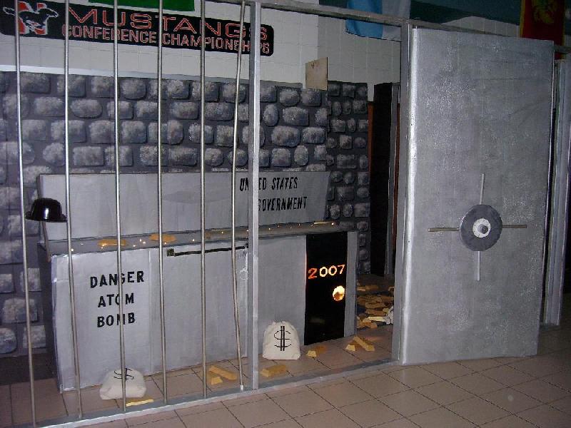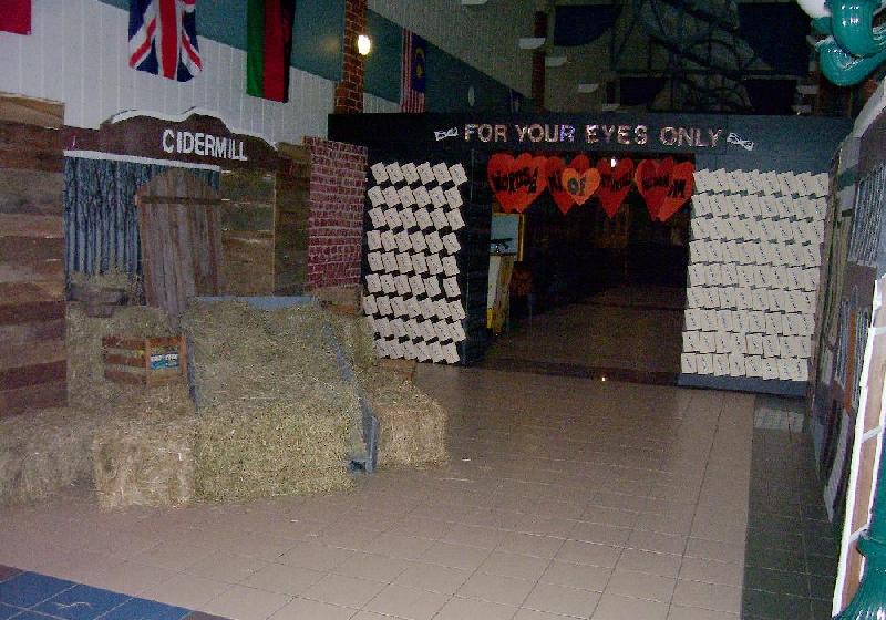Pictures of Northville 2007 SANP. With comments, as seen by me. The 2007 SANP was not as successful as 2006, at least in my eye. Needed more interactive decorations. Other than the games I provided, there really was no interactive displays, and no "actors" as used in 2006. This was a mistake, but the 2007 parents just were not as involved as the prior year. If it wasn't for John Springer, the 2007 SANP would have been a disaster. He did more decoration work than nearly anyone else. John was a worker for sure, and did what most of the other 450 parent-pairs of 2006 could not do (that is, give the kids their time). This was really sad in my opinion. (If you can't donate time for your own kid's last farewell to youth, what does that say about your parenting style? Future SANP parents need to keep this in mind, and to remember, the SANP party is FOR THE KIDS.) The entrance way to SANP. The blue walls were cute, but the time spent on these was pretty big. Much like wallpaper that unfortunately, the kids hardly noticed. I was the one that 'cut in' the white letters. Another fellow did the fill-in. This was done on THE DAY of the party! When he started to put a second coat on the lettering I told him, "the enemy of good, is better, we have some other stuff to do in the 4 hours left right?" Applied the second coat of paint anyway, which did not have much time to dry. I heard the white paint was smeared on the blue background when the panels were moved to the high school, and had to be repaired at the high school. Sigh, but that's how things kind of went for the 2007 SANP. |