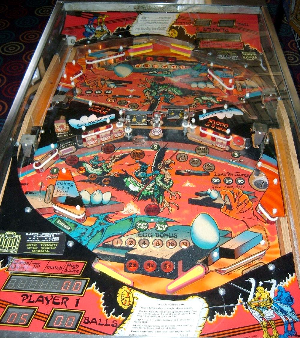 Description: Description: Joust, Williams, 4/83, a head-to-head pinball machine (played with one or two players simultaneously.) There were 402 Williams Joust pinballs were made. Williams system7 solidstate design. If you have a Williams Joust pinball for sale please contact me at cfh@provide.net