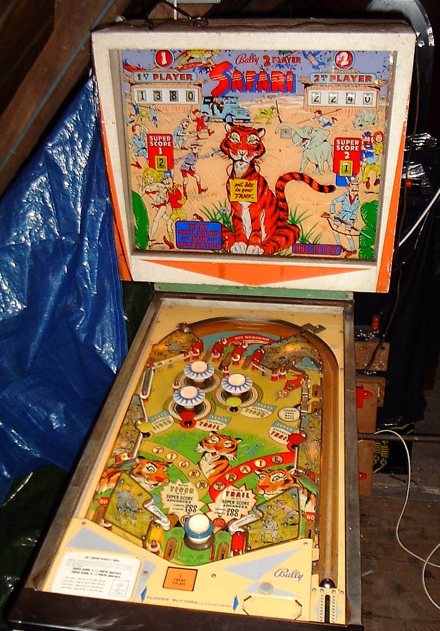 Description: 1968 Bally Safari pinball machine, Bally, 05/68, two player. Electro-mechanical pinball machine. 1100 units made. If you have a Bally Safari pinball machine for sale please contact me at cfh@provide.net