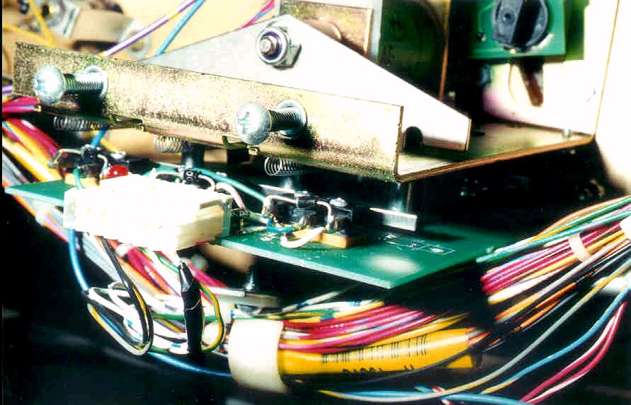 This 3-bank drop target used the "U" shaped optos, and had a LM339 chip mounted