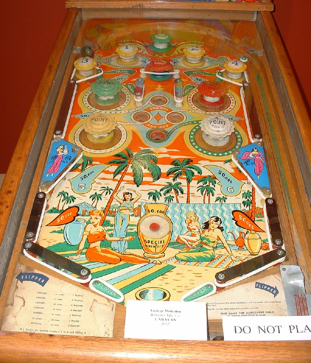 Description: Caravan #74, 6/52, four trap holes. If you have this pinball game for sale please contact me at cfh@provide.net