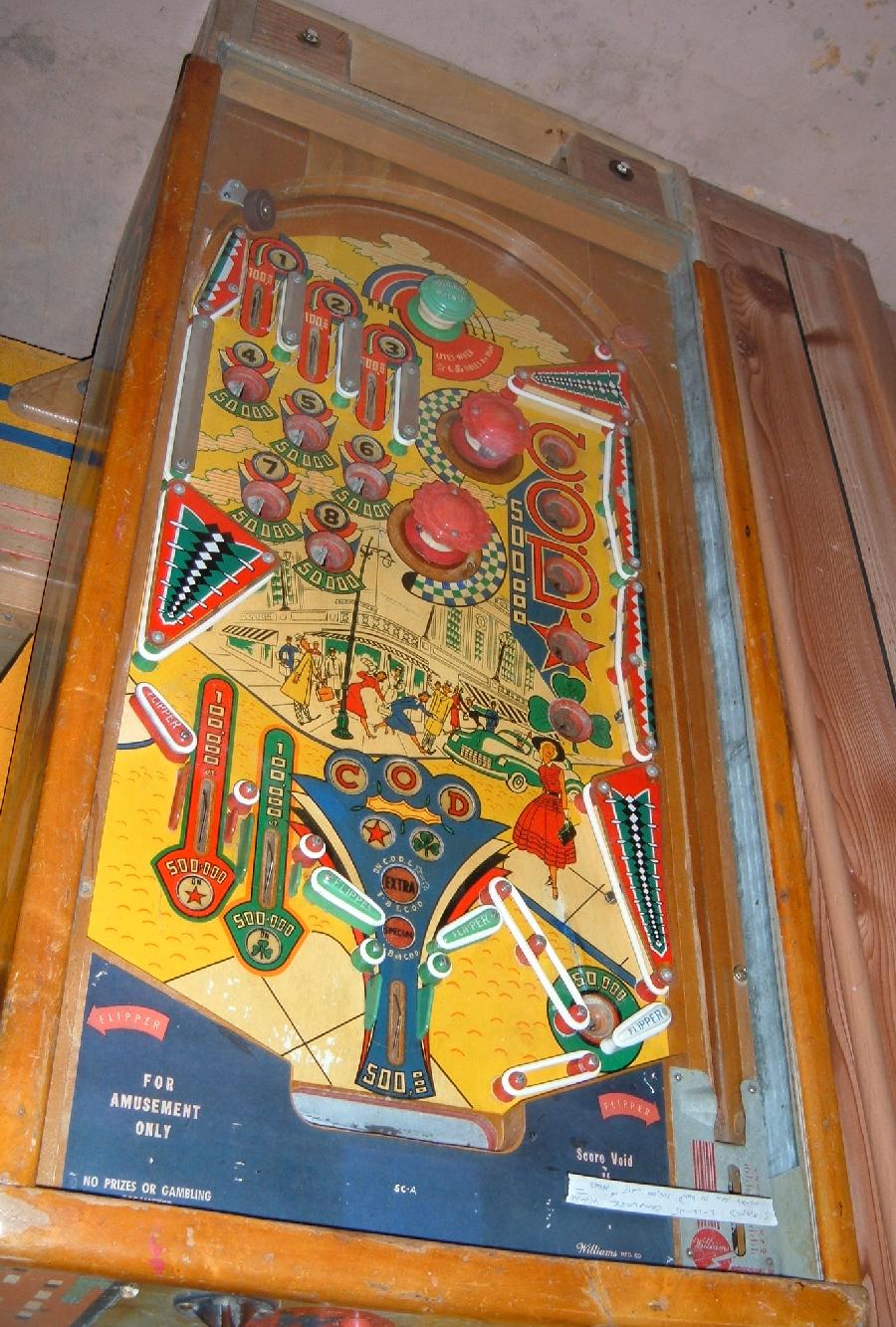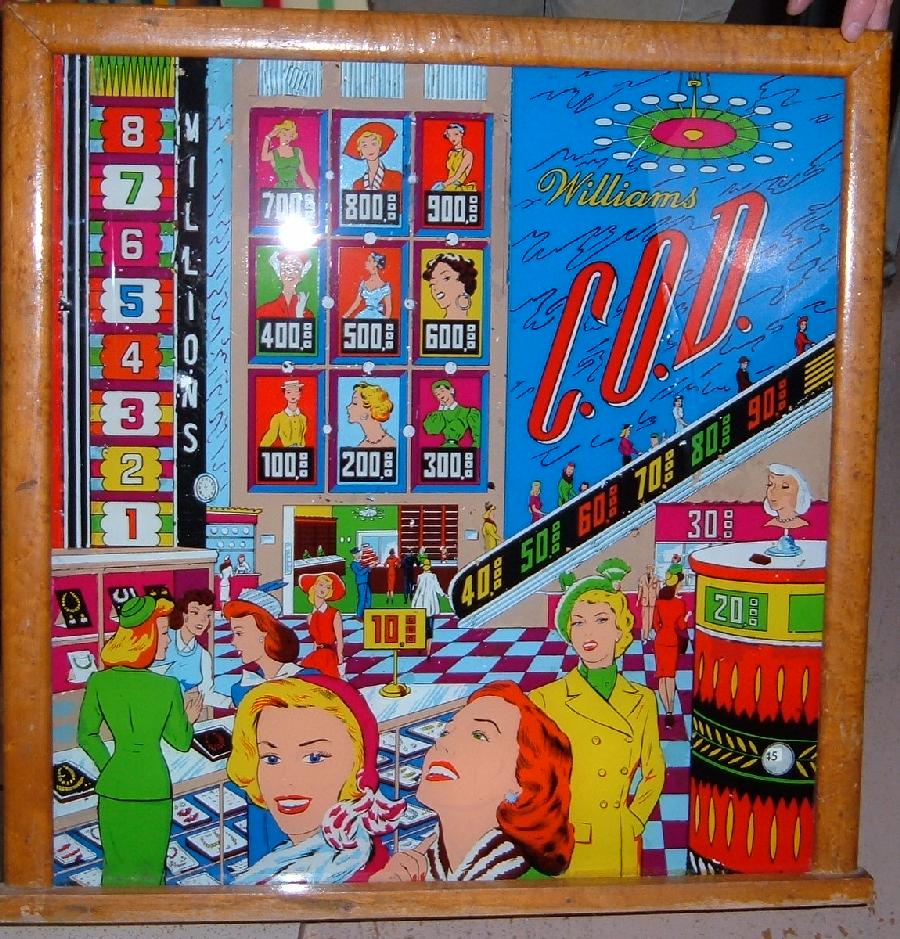 Description: C.O.D. #90, 9/53, five kickout holes, woodrail pinball. If you have this pinball game for sale please contact me at cfh@provide.net
