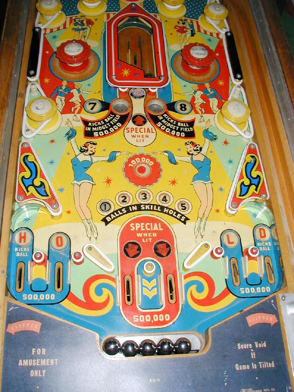Description: Lulu #111, 11/54, mini playfield in middle of game that kicks the ball. If you have a Williams LuLu pinball game for sale please contact me at cfh@provide.net