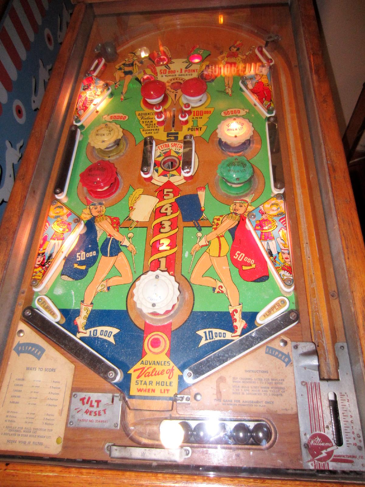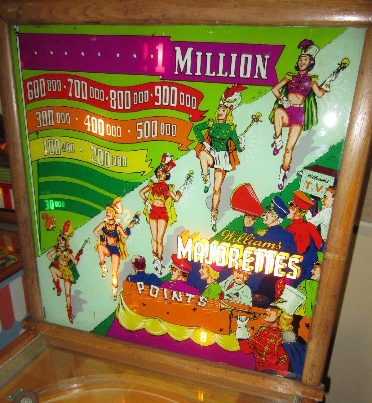 Description: Majorettes #68, 4/52, art by Roy Parker (and it shows!), four kickout holes. If you have a Williams Majorettes pinball game for sale please contact me at cfh@provide.net