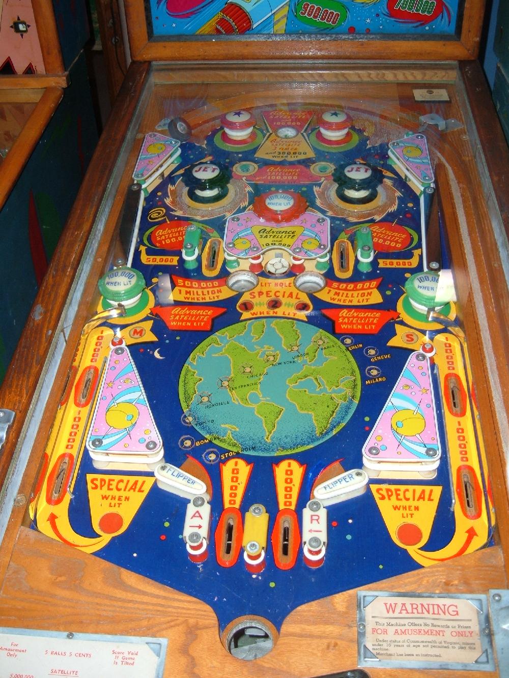Description: Satellite #199, 6/58, one kickout hole, woodrail pinball. If you have this pinball game for sale please contact me at cfh@provide.net