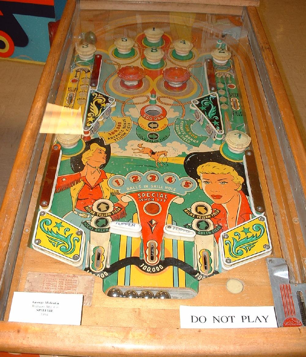 Description: Spitfire #117, 12/54, Star feature, one gobble hole, two captive ball kickers, reverse flippers. If you have this pinball game for sale please contact me at cfh@provide.net