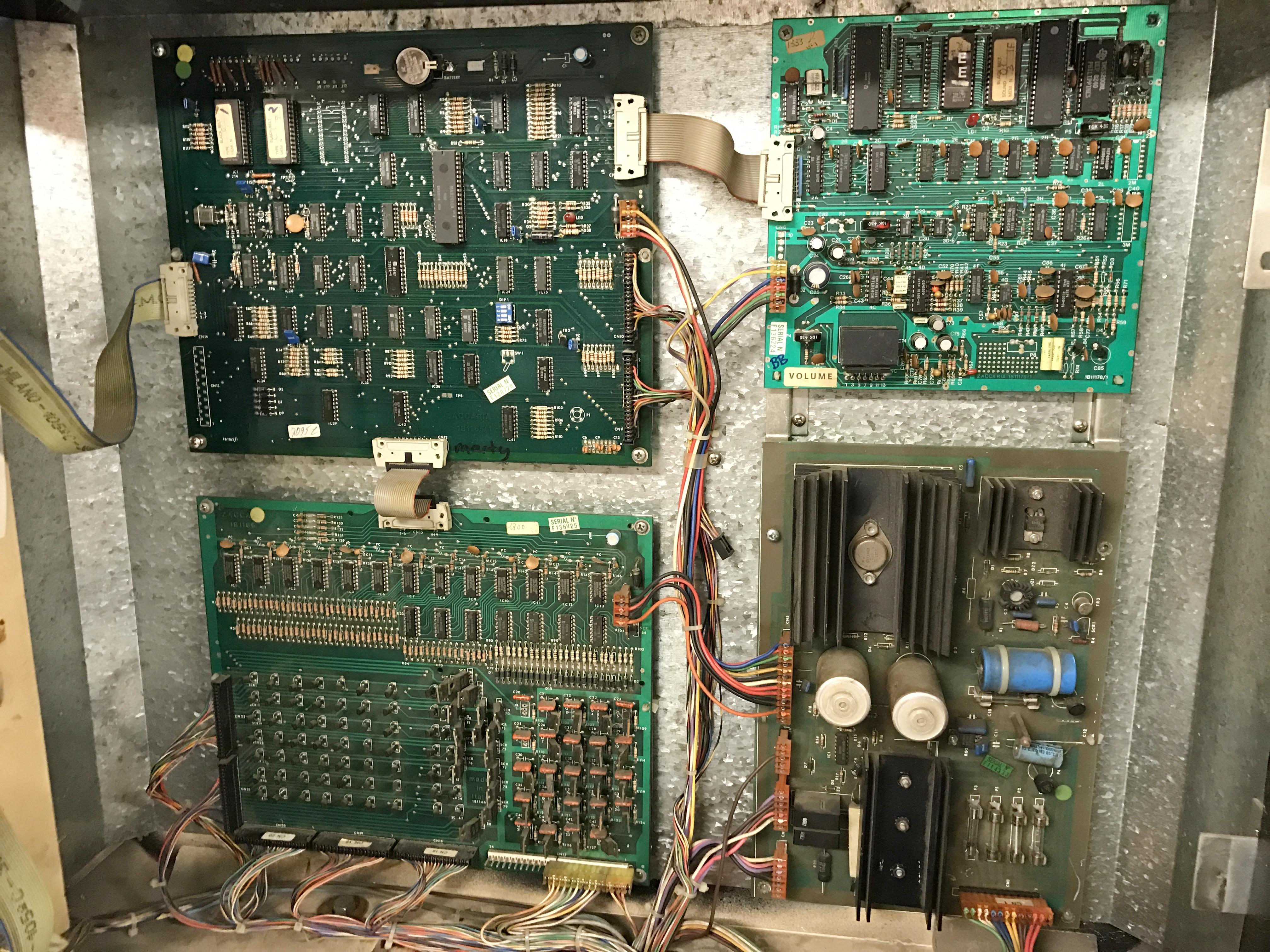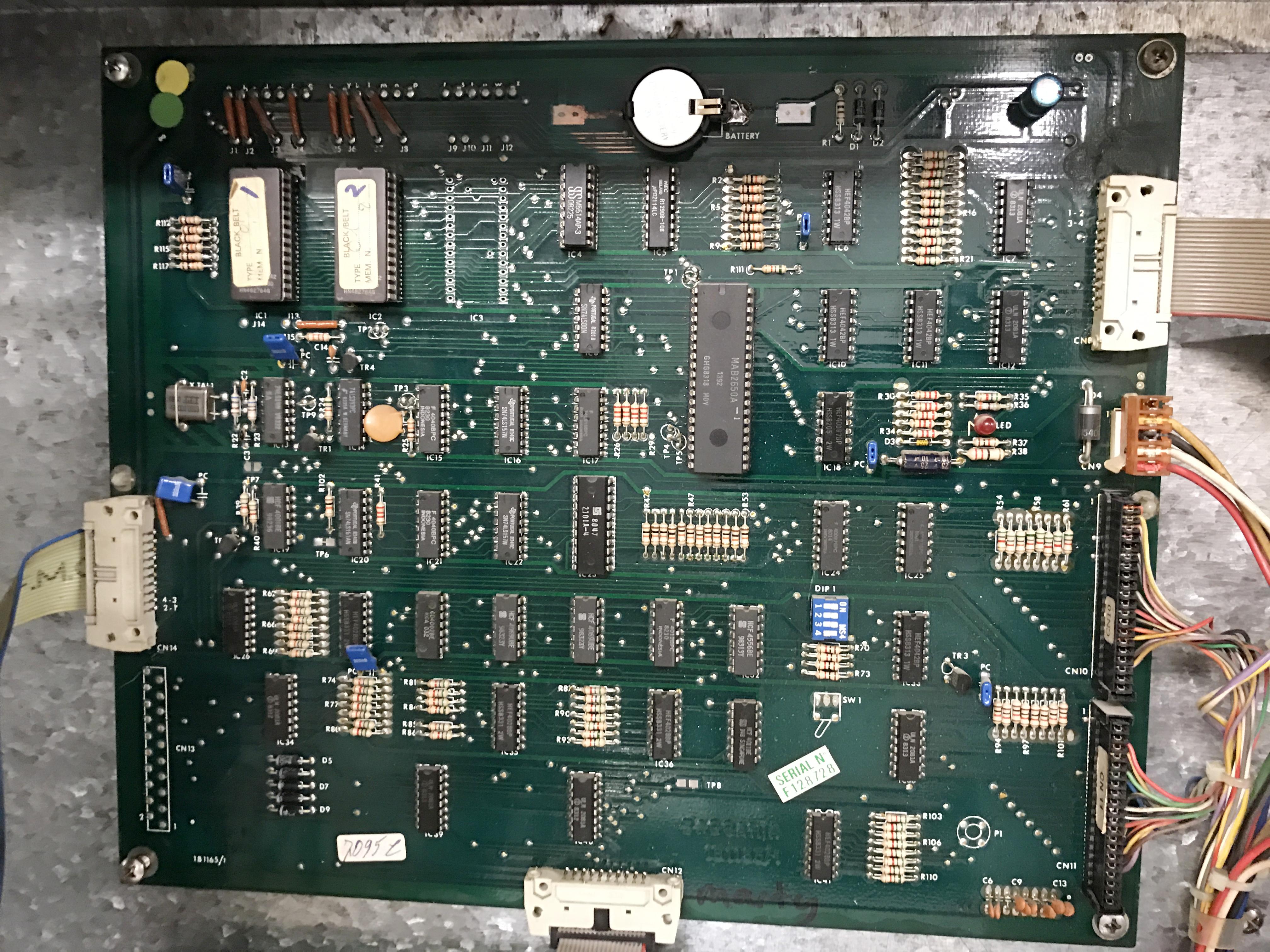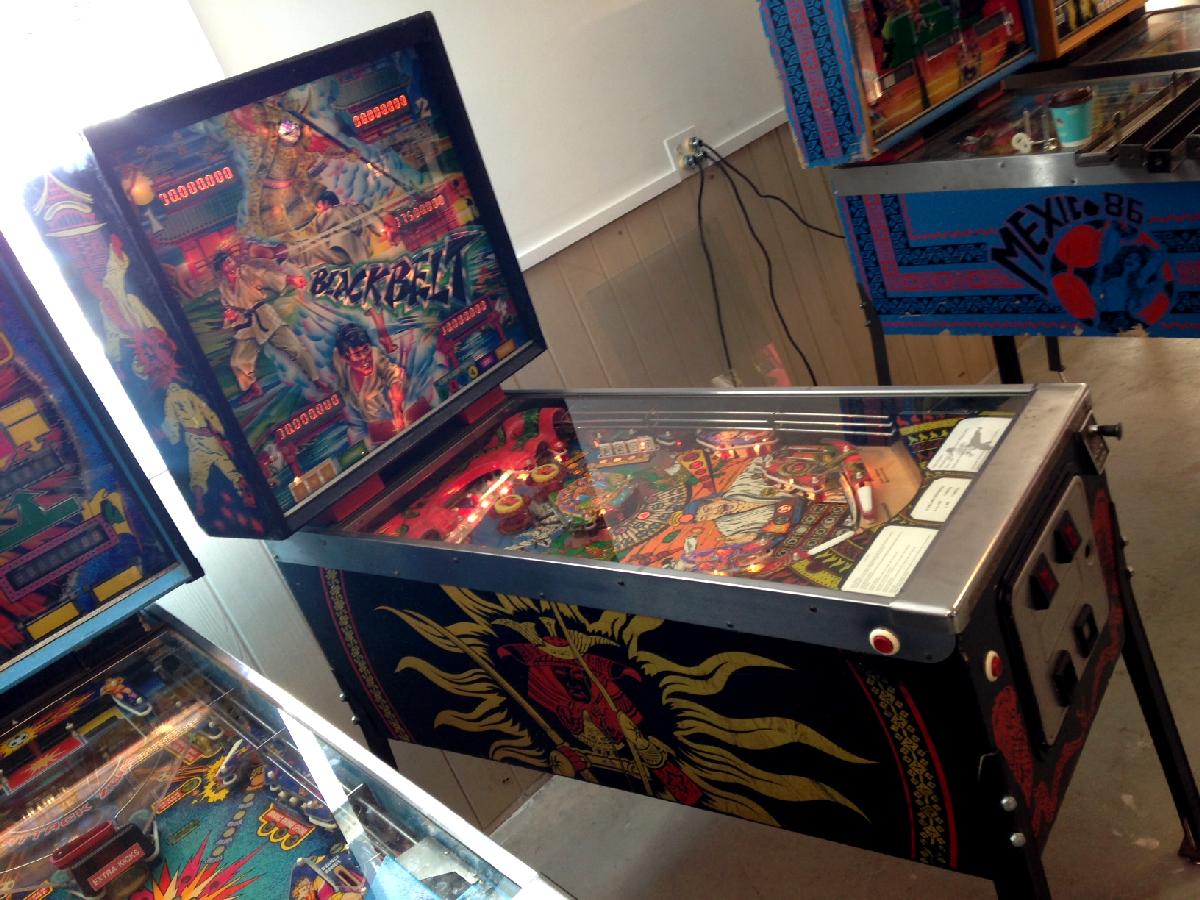 Description: 1985 Zaccaria Black Belt, Zaccaria, 3/86, two flippers. No speech, no multiball. Uses a 1B1165/2 MPU, (5) 1B11150/0 (8 Digit) score displays, 1B11178 Sound board, 1B1166 driver board, and 1B11167/0 Power Supply board. Also features a timed "bonus ball". If you have a Zaccaria Black Belt pinball for sale please contact me at cfh@provide.net