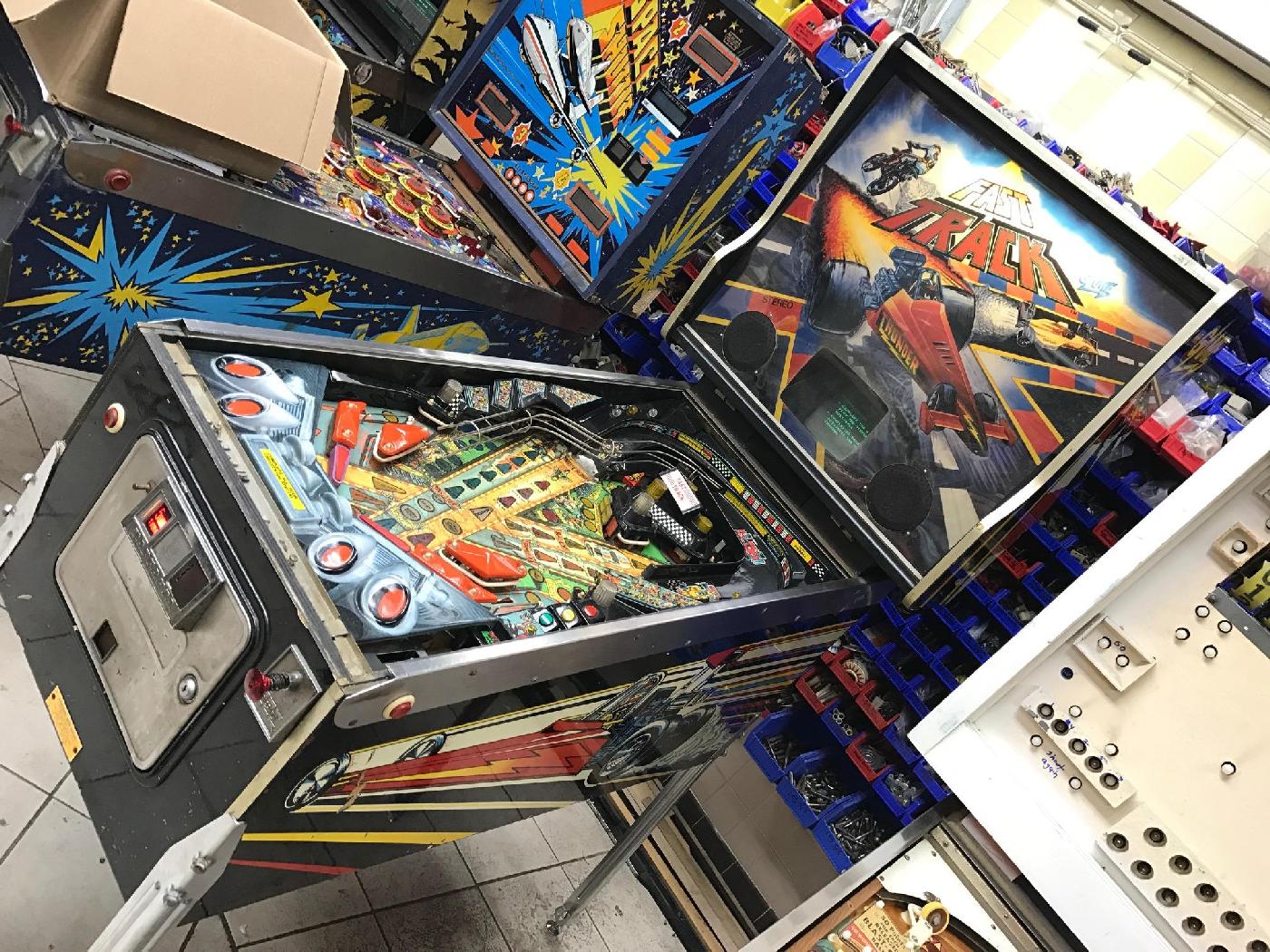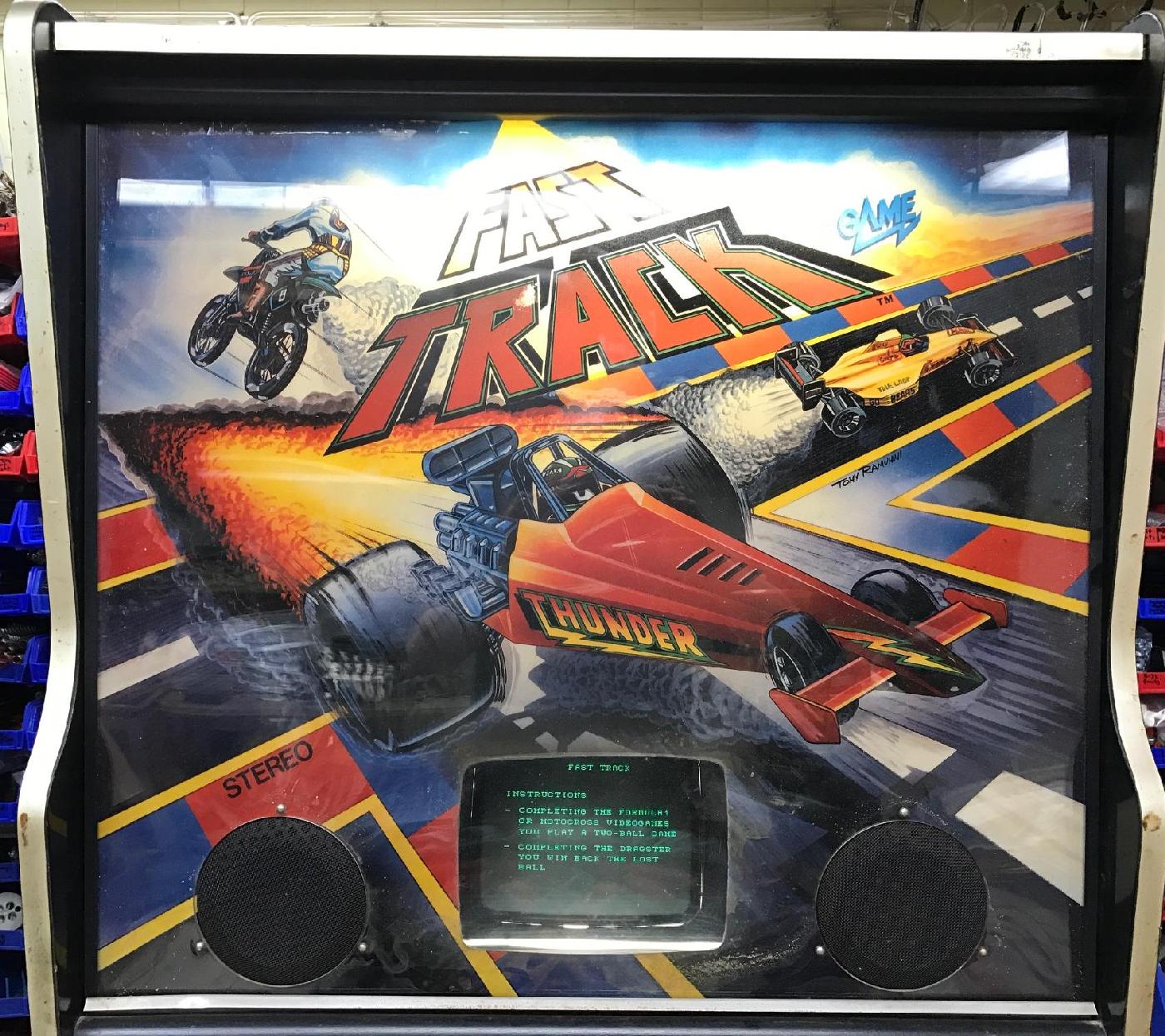 Description: 1988 Mr. Game Fast Track, 1988. Mr. Game was essentially the same company as Zaccaria after bankrupcy. Note this is a similar game to Mr. Game Motor Show, but they are not the same. Fast Track uses a 9" green screen 12 volt monitor (Motor Show uses a 9" color monitor.) The ROMs for Fast Track are available here. If you have a Mr.Game Fast Track pinball for sale please contact me at cfh@provide.net