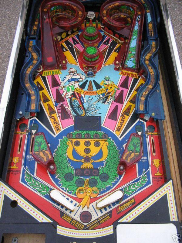 Description: 1987 Tecnoplay Scramble, 3/87. Tecnoplay was essentially the same company as Zaccaria after bankrupcy. Later Tecnoplay games used a different board set than Zaccaria however with a 68000 processor. This game may use Zaccaria boards. If you have a Tecnoplay Scramble pinball for sale please contact me at cfh@provide.net